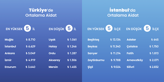 Türkiye’nin önde gelen site ve apartman yönetimi platformu, 22 bini aşkın bina ve 1,5 milyondan fazla konutu kapsayan raporunu yayımladı. Türkiye’de son 3 yılda aidatlar ortalama %367 artarken; 2025’te ortalama aidat tutarı 8 bin 710 TL seviyesine ulaşan Muğla zirveye yerleşti. Uşak, aidat ortalamasında en düşük seviyede kalırken, yılın ilk yarısında İstanbul’da aidat ve yaşam masraflarından kaçınmak için 117 binden fazla taşınma gerçekleşti.